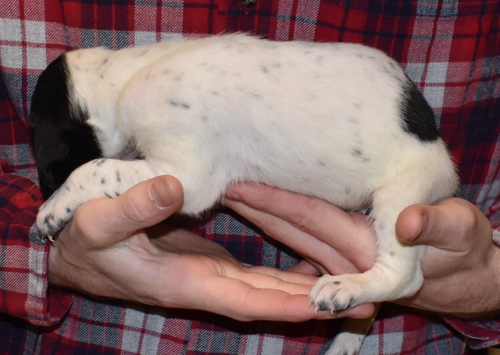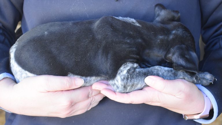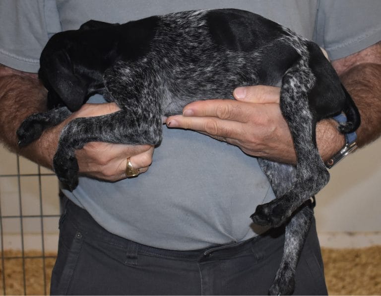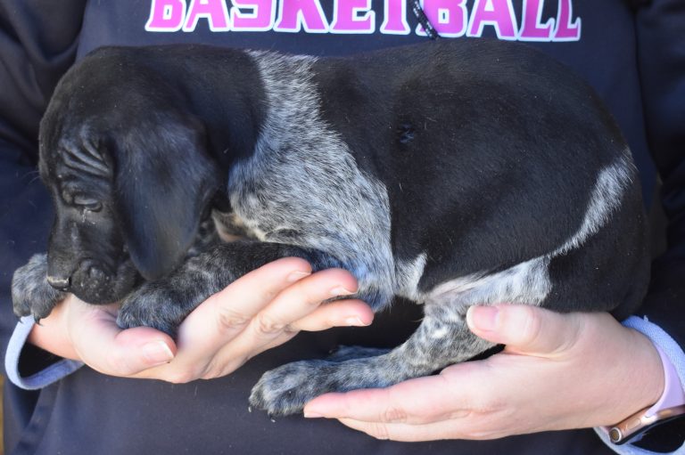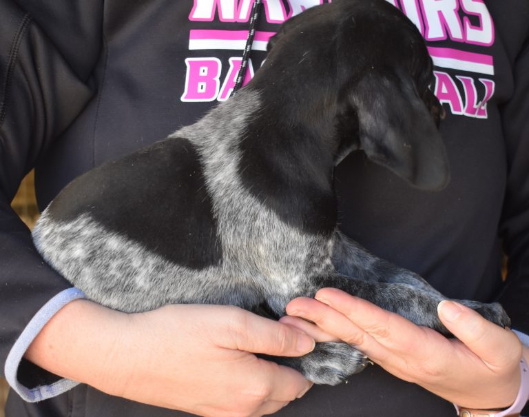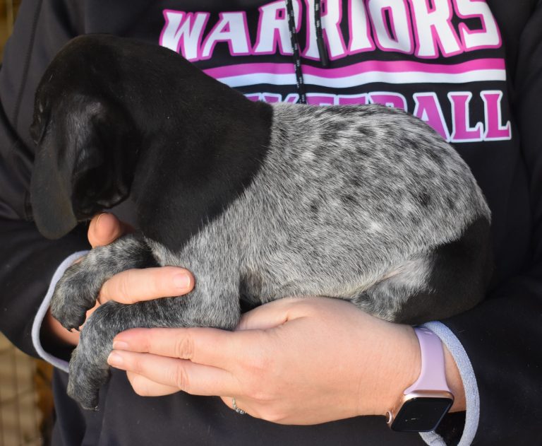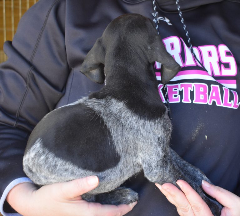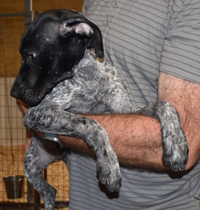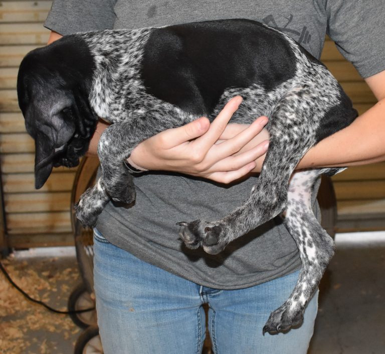 A-Maggie F3 is available. She is a beautiful pup. Her body is black patched and roan with a couple of large patches. She is a great looking pup with a solid black head. She was born to Maggie and Deuce on 1/21/26. Maggie is the daughter of the great one, Ruger. This pup is also the daughter of great hunting lines on the sire’s side. The sire is the son of a top 5 field trial dog in the country. Previous litters have strong hunting instincts and a pleasing personality. She will be available to go to her new home after 3/4/26. She is $2500 with breeding rights.