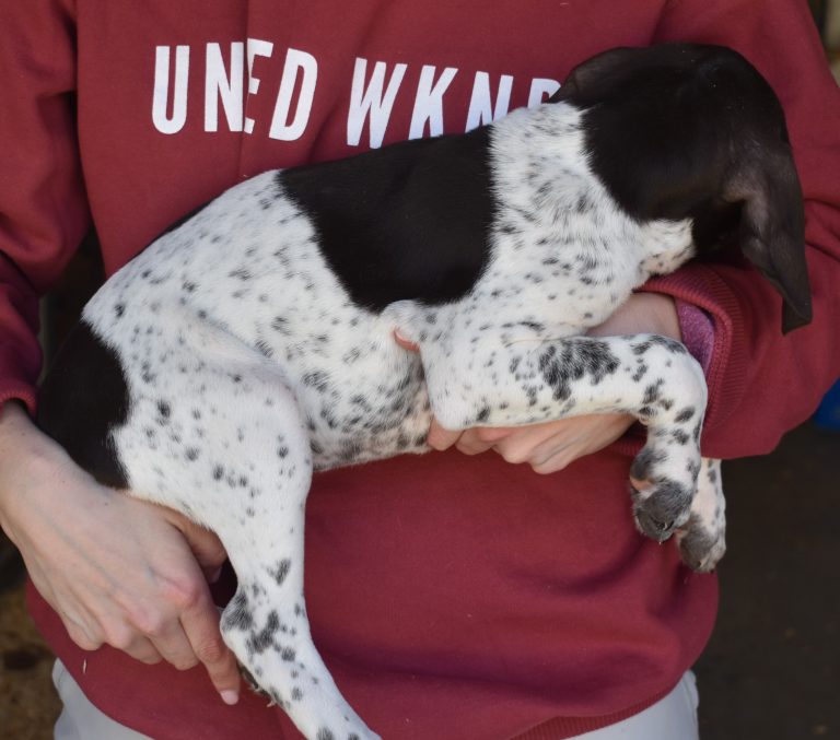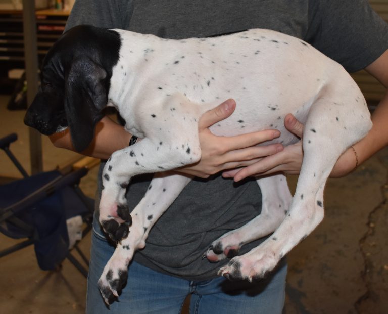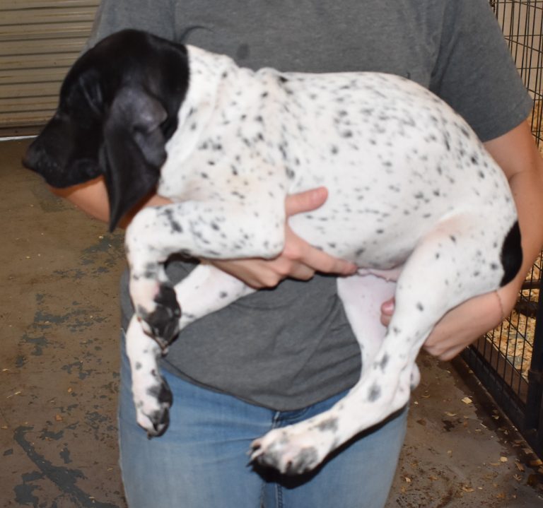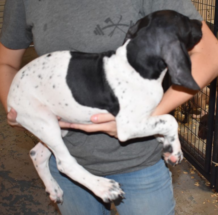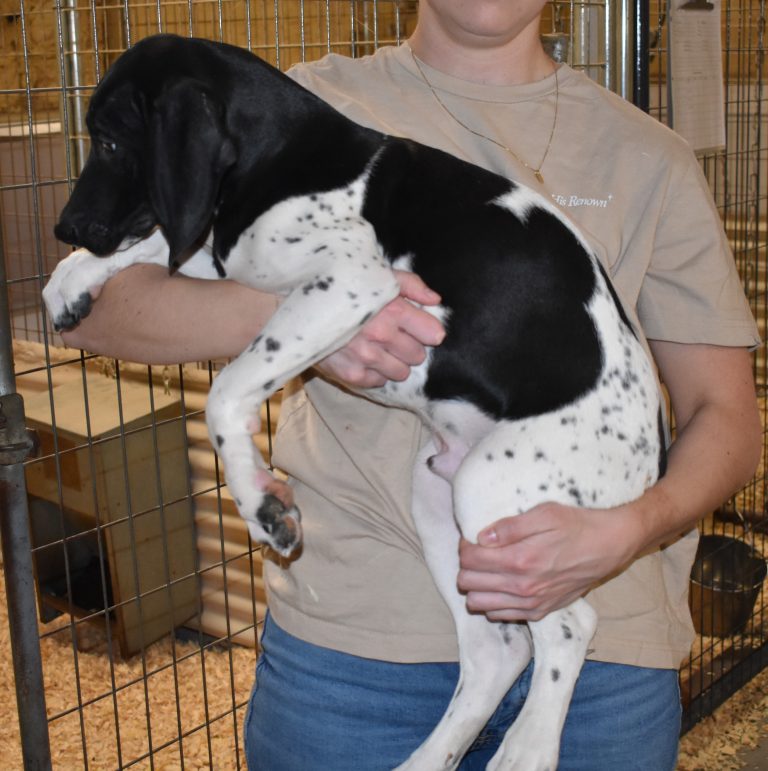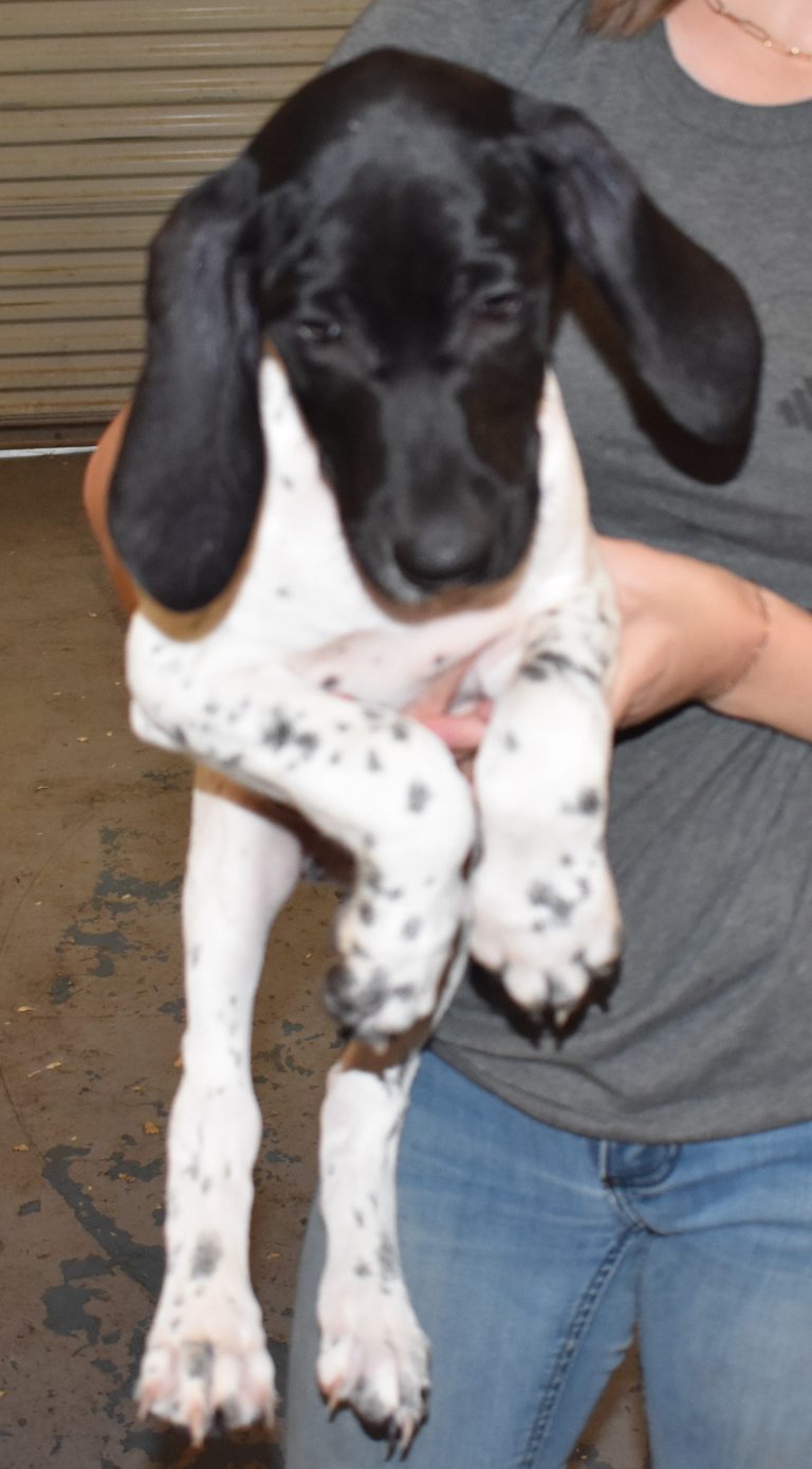 A-Maggie F4 is available. She is a beautiful pup. Her body is black patched and ticked with a couple of large patches. She is a great looking pup with a solid black head. She was born to Maggie and Deuce on 1/21/26. Maggie is the daughter of the great one, Ruger. This pup is also the daughter of great hunting lines on the sire’s side. The sire is the son of a top 5 field trial dog in the country. Previous litters have strong hunting instincts and a pleasing personality. She will be available to go to her new home after 3/4/26. She is $2500 with breeding rights.
